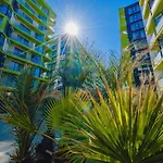 Il Apartament Sim Alezzi Beach Resort si trova a Năvodari, a una distanza di 7 km da Siutghiol Lake, e offre agli ospiti una piscina esterna stagionale e un centro fitness. Quest'appartamento inoltre vanta una posizione sulla spiaggia a 3 km dal Cabo beach.